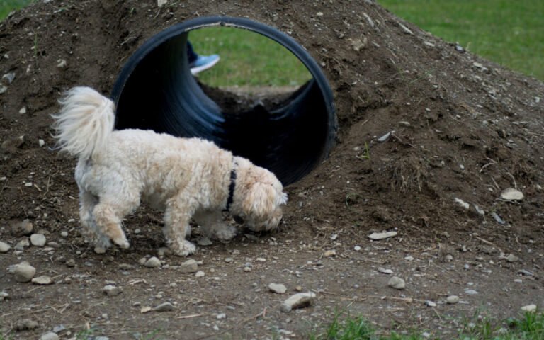 Watson, a 5-year-old Bichon Frize and Yorkshire Terrier mix owned by Judy Bougie, plays at the Caribou Dog Park. Construction of a similar park for Presque Isle is underway. (File: Chris Bouchard | Aroostook Republican)
