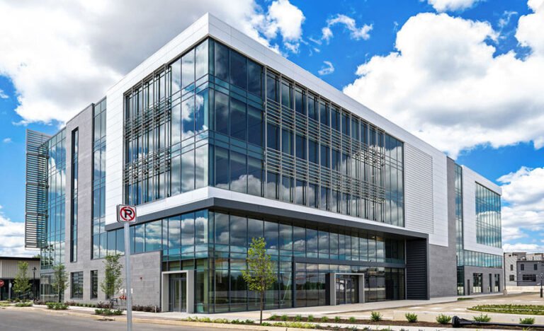 “We had to finish the east and north facades before erecting the prefab parking structure because we couldn’t drive the big construction equipment into the garage to avoid damaging it,” says Alex Byard, senior project manager for IMC Construction, general contractor for the project. .
