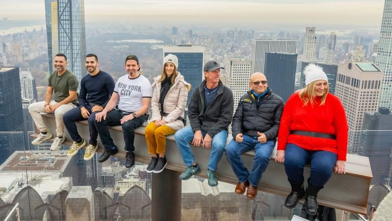 - The ride emulates the experience of the 11 steelworkers who posed for the iconic “Lunch Atop a Skyscraper” photo in 1932.