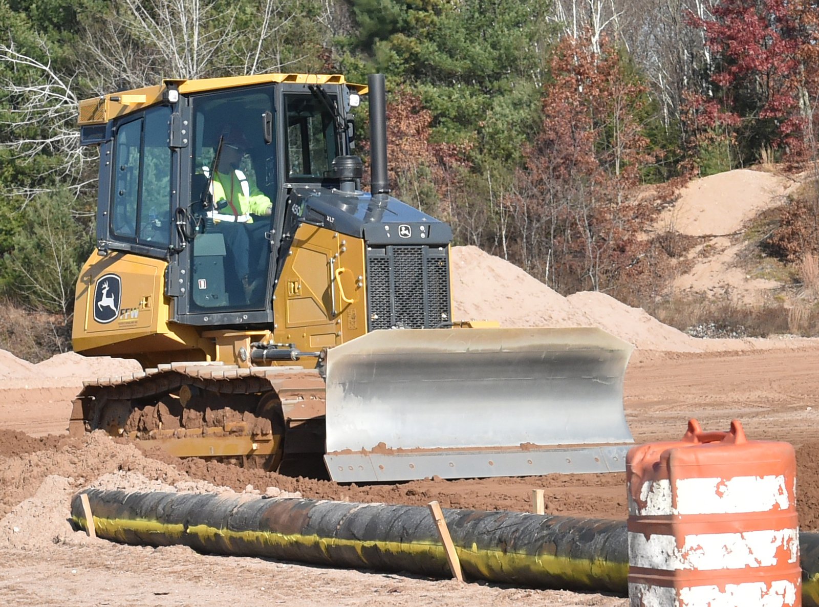 Nikita Laik, 21, of Chicopee, operated an excavator leveling the ground to find a line painted on a jersey barrier.