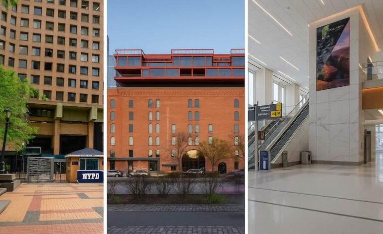 NYPD headquarters – 1 Police Plaza – Electric System Update (left), Terminal warehouse (middle) and Delta Air Lines, Inc. LGA Aerodrome Reconfiguration Program (right) are finalists of the New York ENR project of the year.
