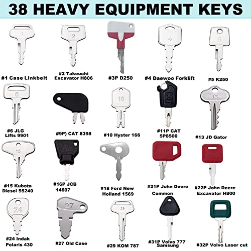WAH YUE HING 38 Heavy Equipment Key Set, Construction Ignition Key Set for Heavy Machinery Fits Case Takeuchi JD JLG Hyster Kubota New Holland Ford Caterpillar & More